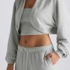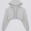 Comfort layers. Inspired by Sunday styling and designed for everyday wear, our cropped shrug is fitted with a fixed hood and cut to a curved silhouette that falls slightly longer at the back. Designed to pair perfectly with separates from the collection, it’s crafted from the same cosy and ultra-soft double-brushed jersey and features full-length cuffed sleeves that accentuate the relaxed fit.