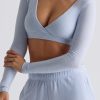 Unwind and look good doing it. Perfect for styling on laid-back days, this top is crafted from our luxe, double-brushed jersey that’s irresistably soft, breathable, and designed with a touch of stretch for maximum comfort. It’s cut to a clean, cropped silhouette with a wrap neckline and a non-restrictive yet supportive elasticated hem tagged with a tonal Bo+Tee logo.