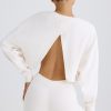Lightweight layers. Perfect for throwing over swimwear or a pair of shorts, this sweatshirt is crafted from textured cotton jersey with a touch of stretch for elevated comfort. It’s cut to an oversized fit with dropped shoulders and features a statement crossover open back. It’s complete with a signature Bo&Tee embroidered logo at the nape.