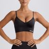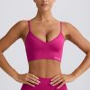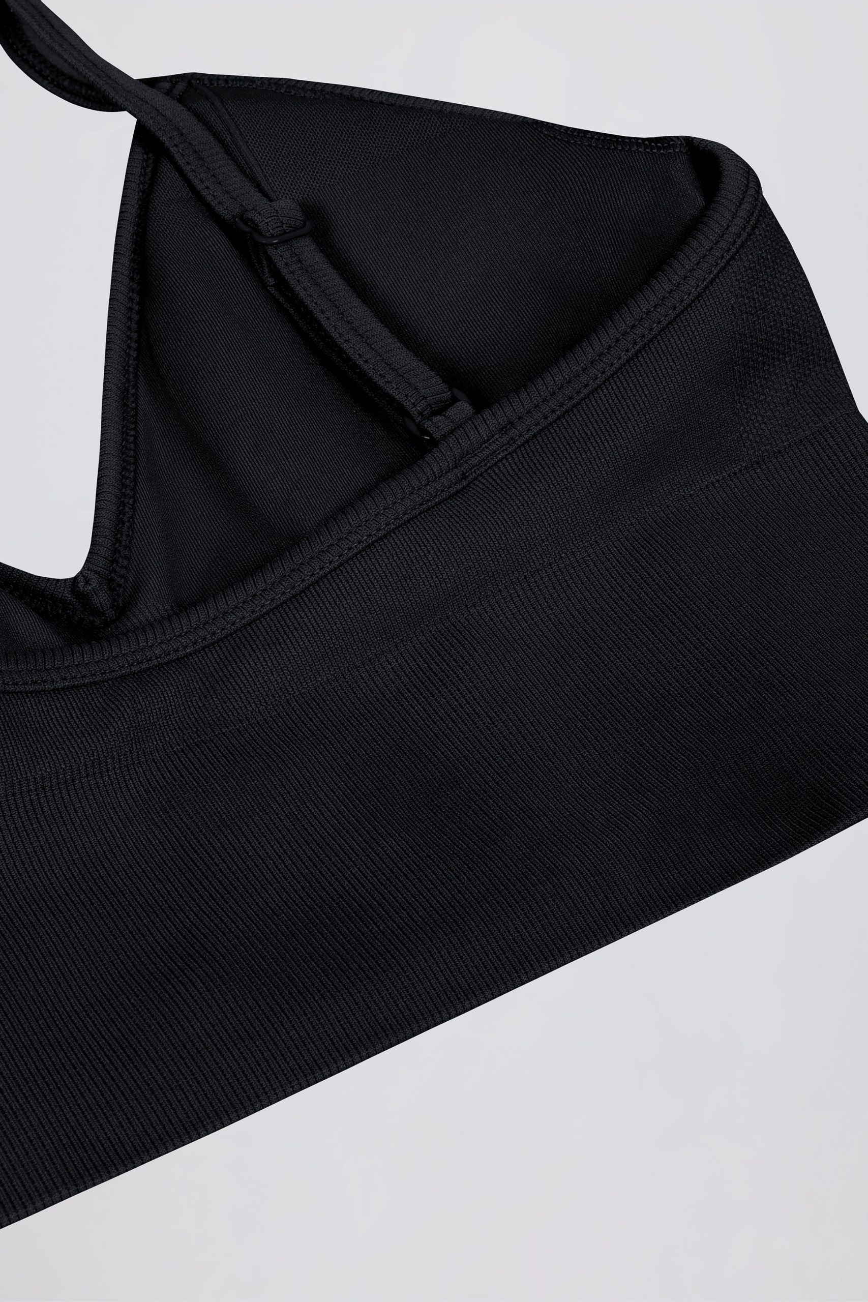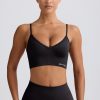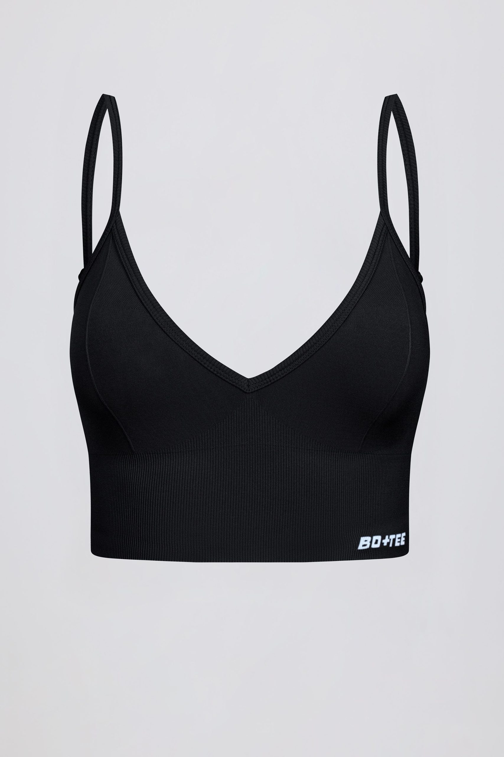 Streamlined support. Slinky soft and engineered for performance, this V-neck sports bra is crafted from our signature Define Luxe fabric with a breathable, seamless knit construction and moisture-wicking properties for enhanced comfort during any workout. It features adjustable straps for a custom fit and a supportive micro-rib underband.