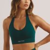 Halter Neck Define Luxe Sports Bra in Jade Green