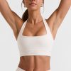 Active essentials. Designed in our all-new lightweight Soft Active fabric, the Deuce crop top effortlessly hugs your body and features a statement square neckline and halter neck strap for added support.