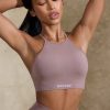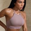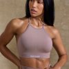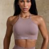 High Neck Open Back Define Luxe Sports Bra in Mocha