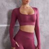 A must have style for cool girl winter, the Instinct long sleeve crop top is an essential for taking your off-duty look from the gym floor to the coffee shop. Featuring a square neckline with supportive ribbed underband, the Instinct crop top has angled shoulders that create a flattering silhouette. Designed in our premium Define Luxe fabric thats seamless, smoothing and effortlessly moves with your body, the Instinct crop top is complete with long sleeves with thumb holes, perfect for lifting weights and staying warm this season. Style with the Superset leggings for a cohesive athleisure look.