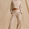 A style you’ll live in, these joggers are crafted from our super soft and sumptuous ribbed-knit fabric to a slouchy wide-leg silhouette. They’re set on a mid-rise elasticated waistband for enhanced comfort and feature a drawstring for a customisable fit. The knitted Bo&Tee logo is a signature found on the coordinating cardigan from the collection.