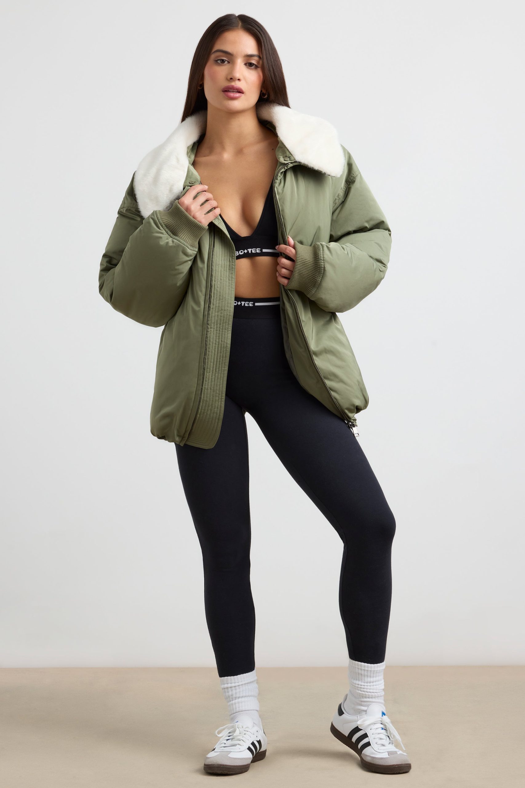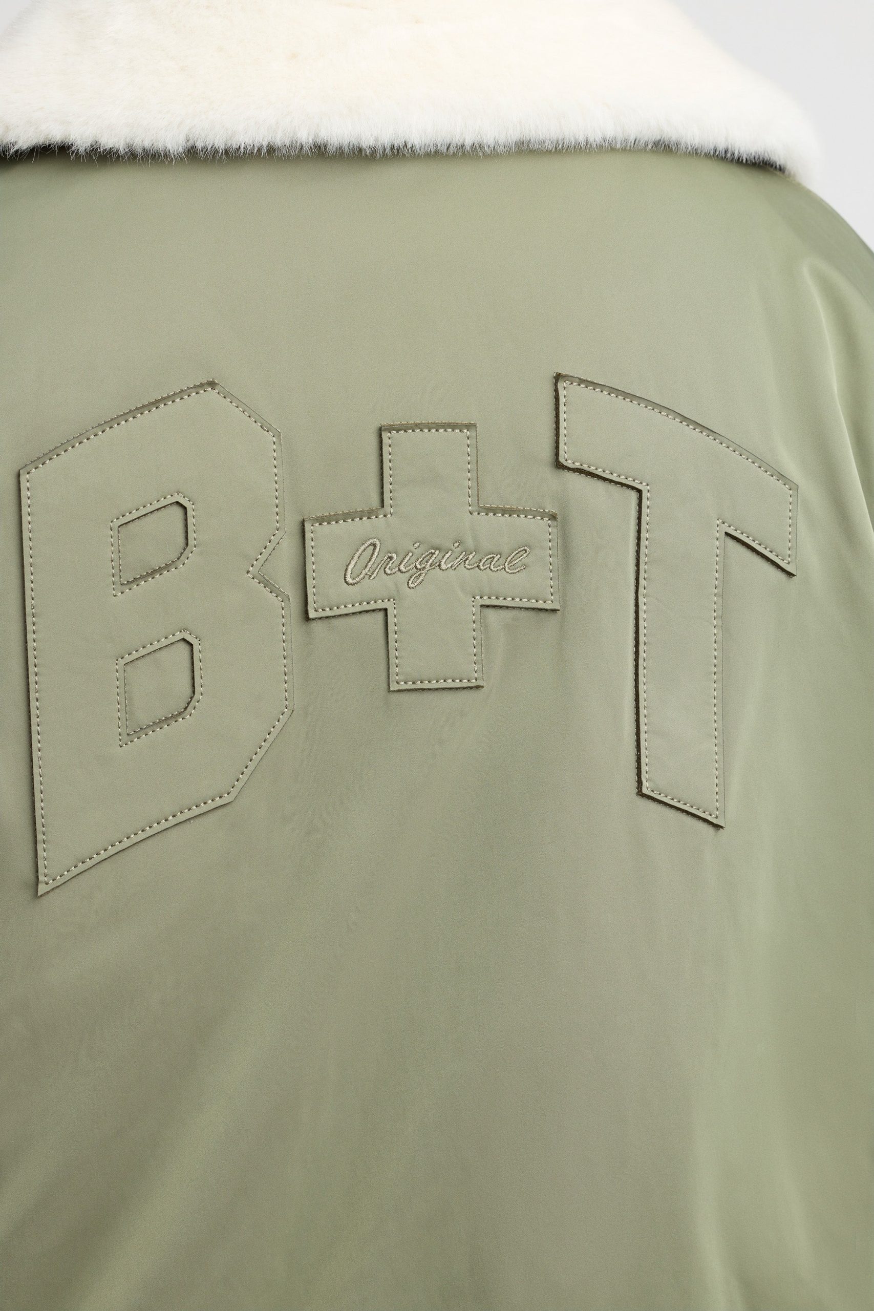 Elevate your outerwear game with Bo+Tee’s Any Day Bomber Jacket. Designed in premium woven twill fabric with an oversized silhouette, Any Day is fully lined for elevated warmth and features an adjustable toggle hem. Perfect for everyday wear, this vintage-inspired bomber jacket is complete with a detachable faux fur collar and Bo+Tee applique on the back.