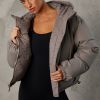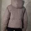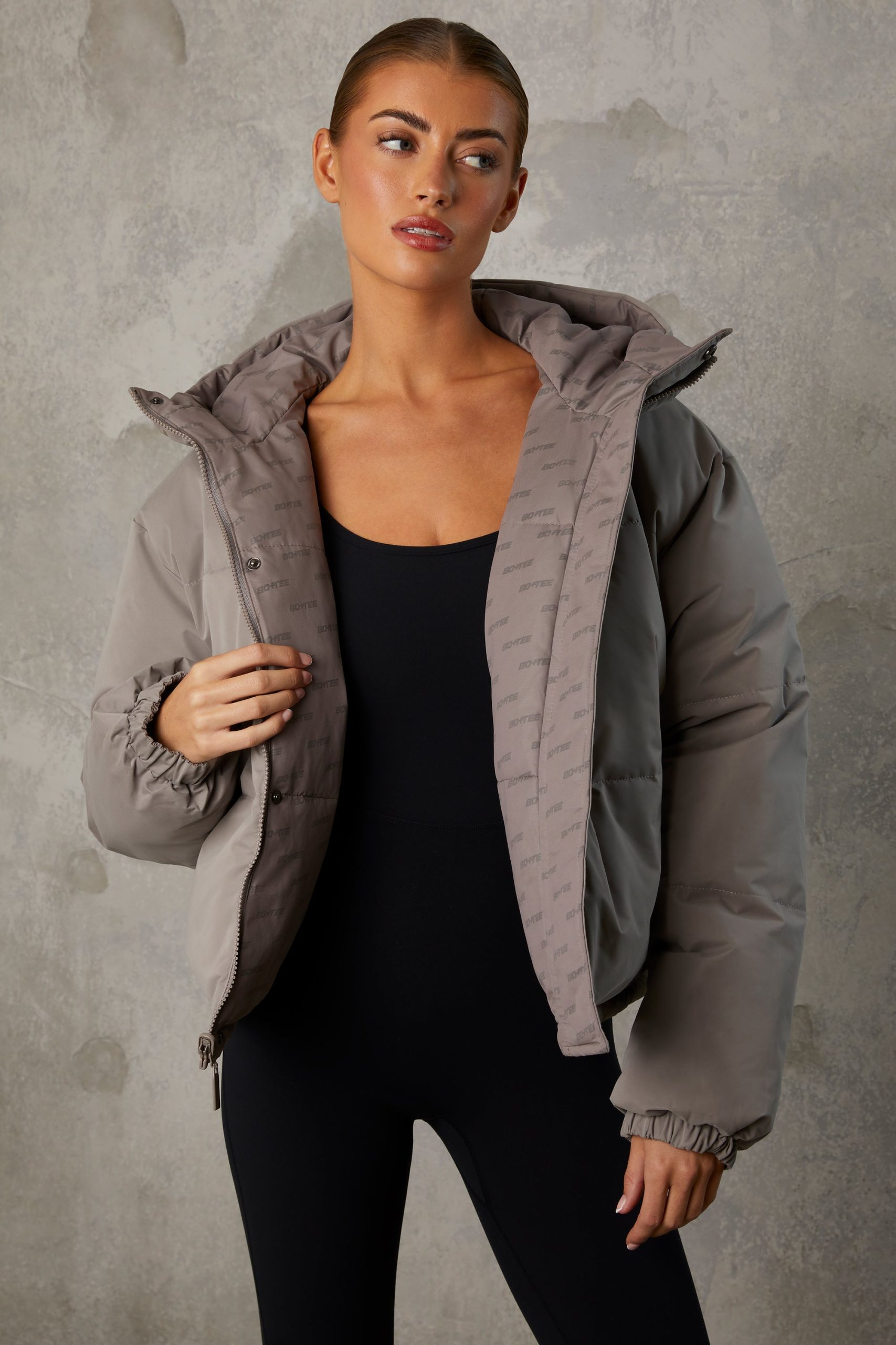 Essential outer layers. A statement design that’s ultra versatile, the Layer Up puffer jacket is a hooded, cropped design with oversized dropped shoulders. Available in solid block shades with a printed design on the reverse, Layer Up is complete with functional side pockets and horizontal quilting throughout.
