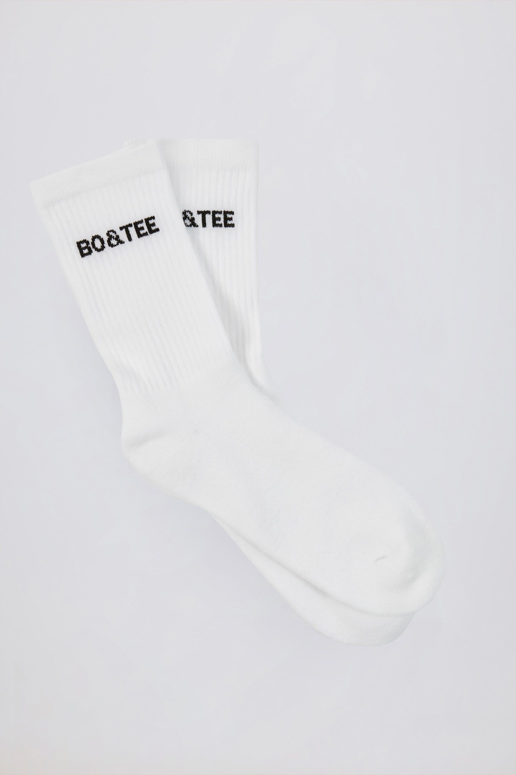Ultimate everyday comfort. Crafted from a super soft and breathable cotton blend, these classic crew socks are perfect for all-day wear. They feature ribbed cuffs for comfortable hold and are complete with signature Bo&Tee branding at the side, making them the perfect finishing touch to everyday athleisure looks.