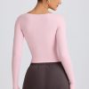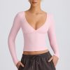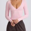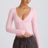 Ribbed Modal Ruched V-Neck Top in Soft Pink