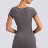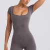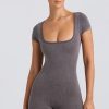Versatile looks for low-key days. The perfect foundation for layered transitional looks, this unitard is crafted from buttery soft Seamless Rib fabric with a subtle, vintage-inspired acid wash finish. It’s designed with figure-defining contouring ribbed panels at the waist and side and framed with a classic square neck.