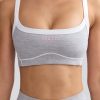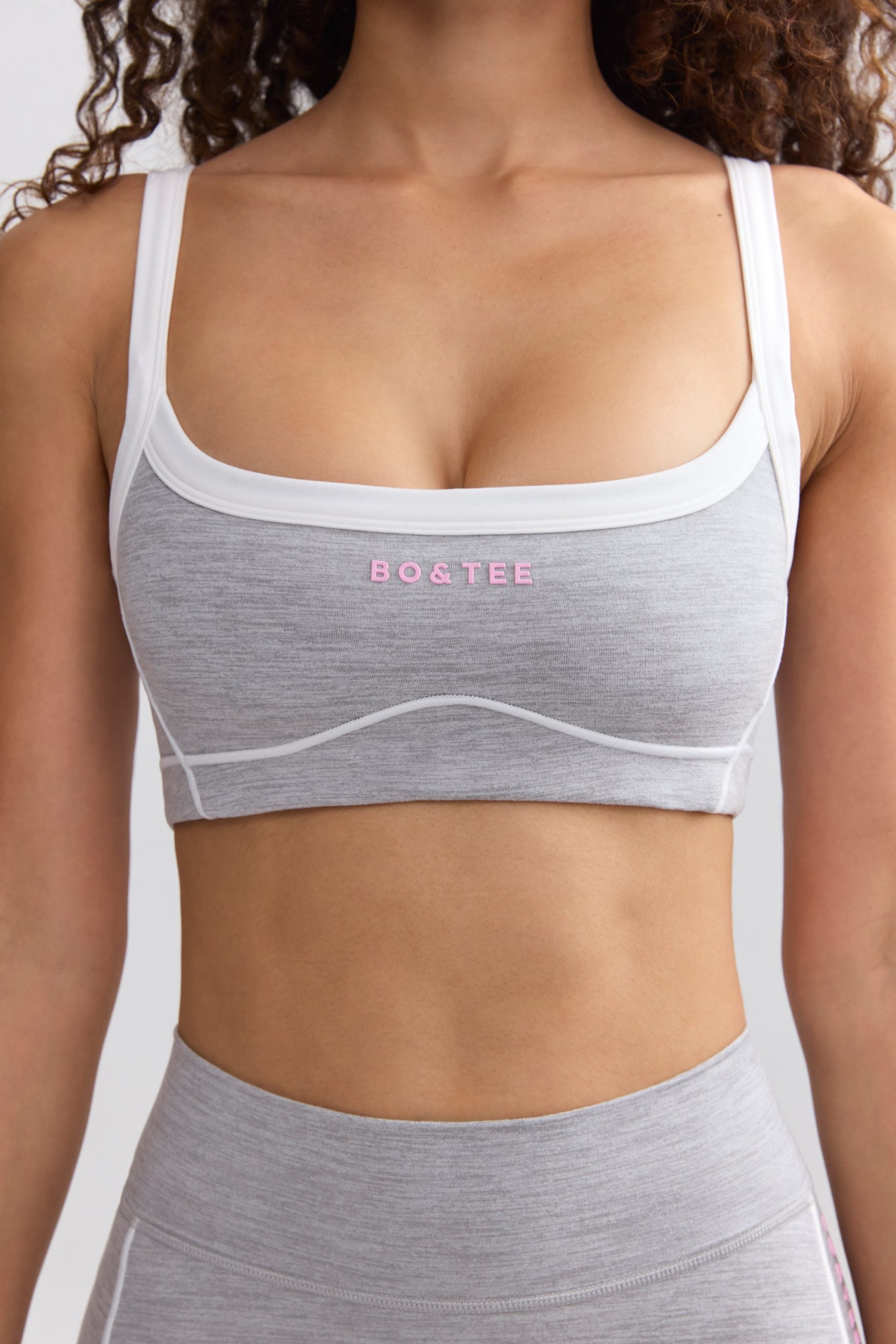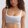 A fresh take on comfortable staples. Designed for an endlessly comfortable second-skin fit, this sports bra is crafted from our lightweight Soft Active jersey with breathable and moisture-wicking properties. It’s cut to flattering scoop-neck silhouette and framed with contrasting straps and piping trims that create a contoured look. The stretchy elasticated underband provides unrestrictive support.