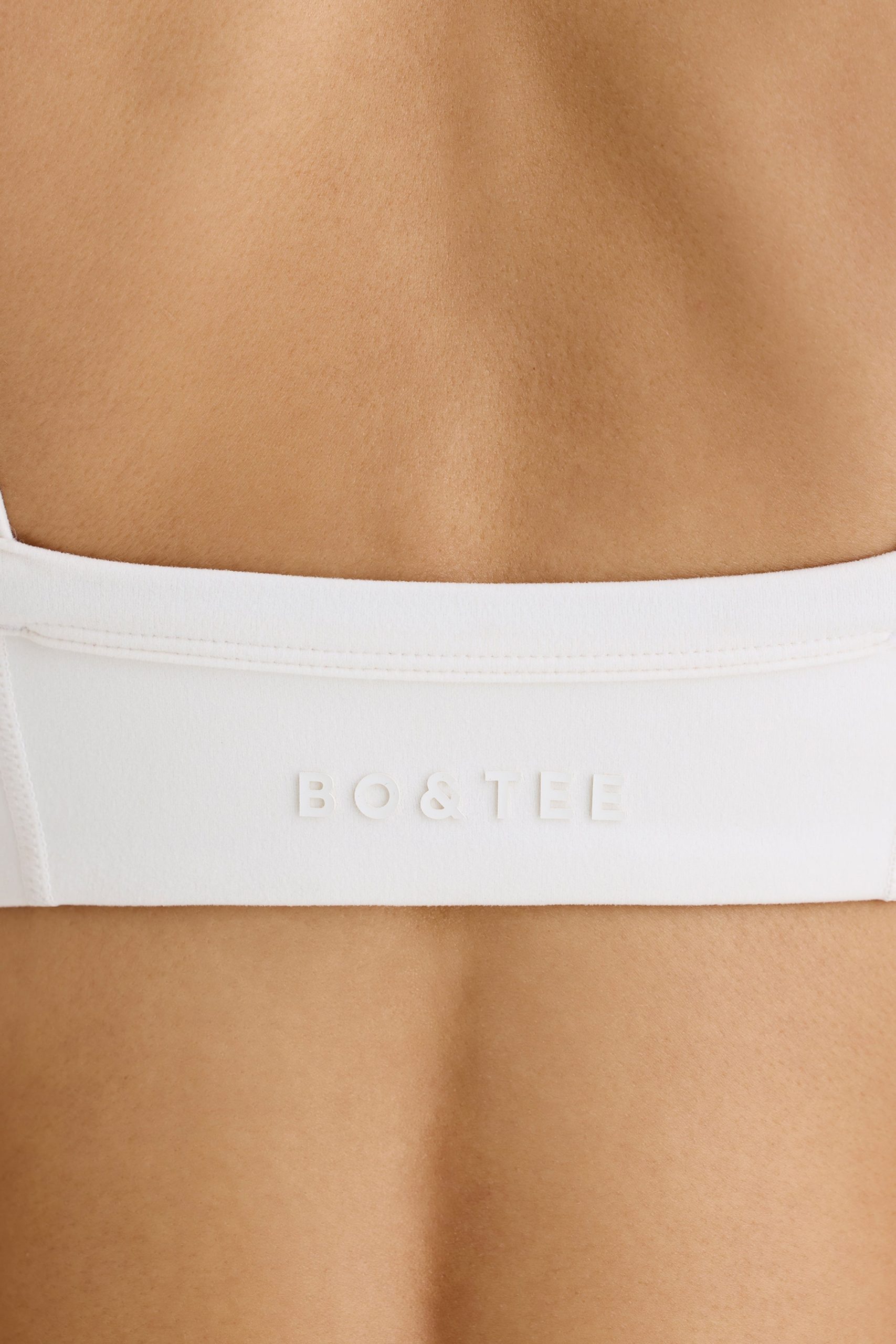 Contouring looks. This sports bra is elevated with signature bust seam detailing that creates a sculpted, lifted look. It’s crafted from our premium Soft Active fabric that boasts breathable and moisture-wicking properties and features an elasticated underbust for all-day comfort and support. It’s framed with wide fixed straps and finished with a tonal silicone Bo&Tee logo at the back.