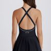 Soft Active Cross-Back Pleated Tennis Dress in Black