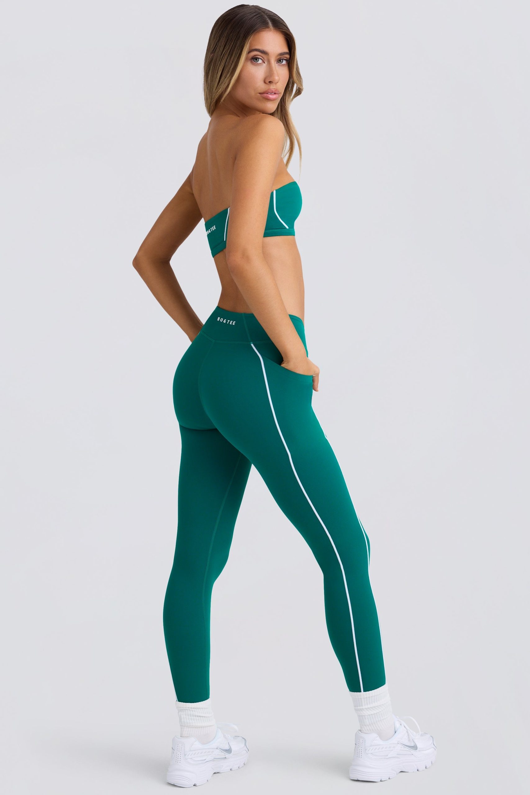 Second-skin comfort. Designed to move with your body for all-day comfort, these leggings are crafted from lightweight and moisture-wicking Soft Active fabric. Theyre set on a curved mid-rise waistband and detailed with functional side pockets, tonal branding and contrast trims, inspired by classic sportswear styles.