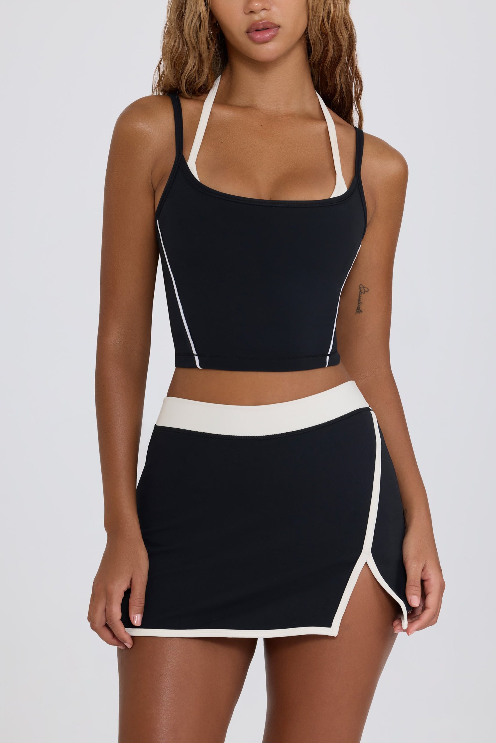 Functionality meets fun. Modelled on retro tennis styles, this skort is crafted from our signature, lightly compressive and breathable Soft Active fabric to a wrap-over silhouette with contrast trims. Its cut to a universally flattering A-line shape with a front split for optimal range of movement and features built-in shorts that support all-day comfort.