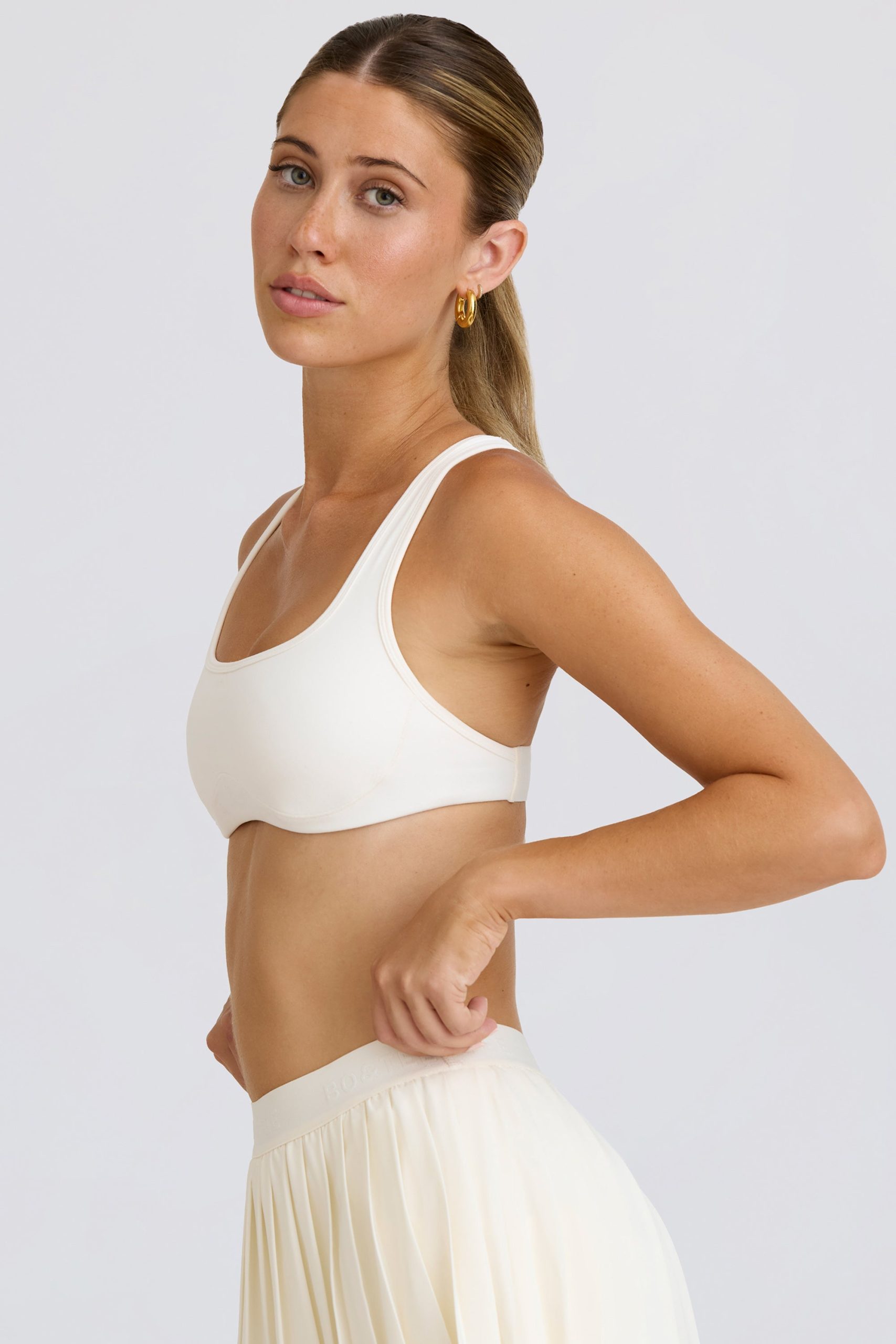 Lightweight support for everyday activity. Designed with medium-impact activities in mind, this sports bra features a contouring underbust seam and racerback with a branded elasticated strap. It’s crafted from our signature Soft Active jersey fabric that’s stretchy, lightweight and breathable, promoting all-day comfort. It’s finished with clean seams for a sleek look.