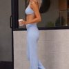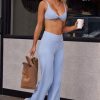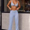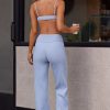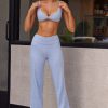 Soft Rib High Waist Fold Over Trousers in Soft Blue