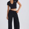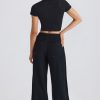 Designed to take you from airport lounge to casual outings, these joggers are crafted from lightweight, textured cotton jersey with a touch of stretch. Set on an elasticated ribbed waistband, they fall to a relaxed wide-leg silhouette and feature two patch pockets at the back – one is embroidered with a tonal Bo&Tee logo for a sleek, signature finish.