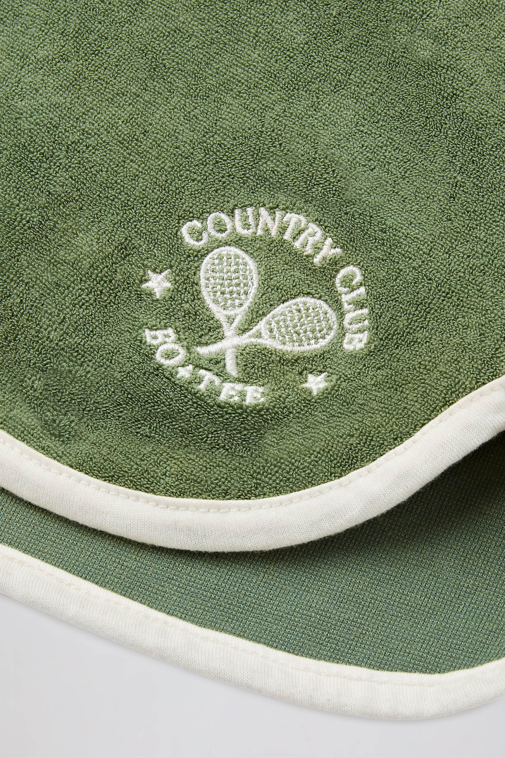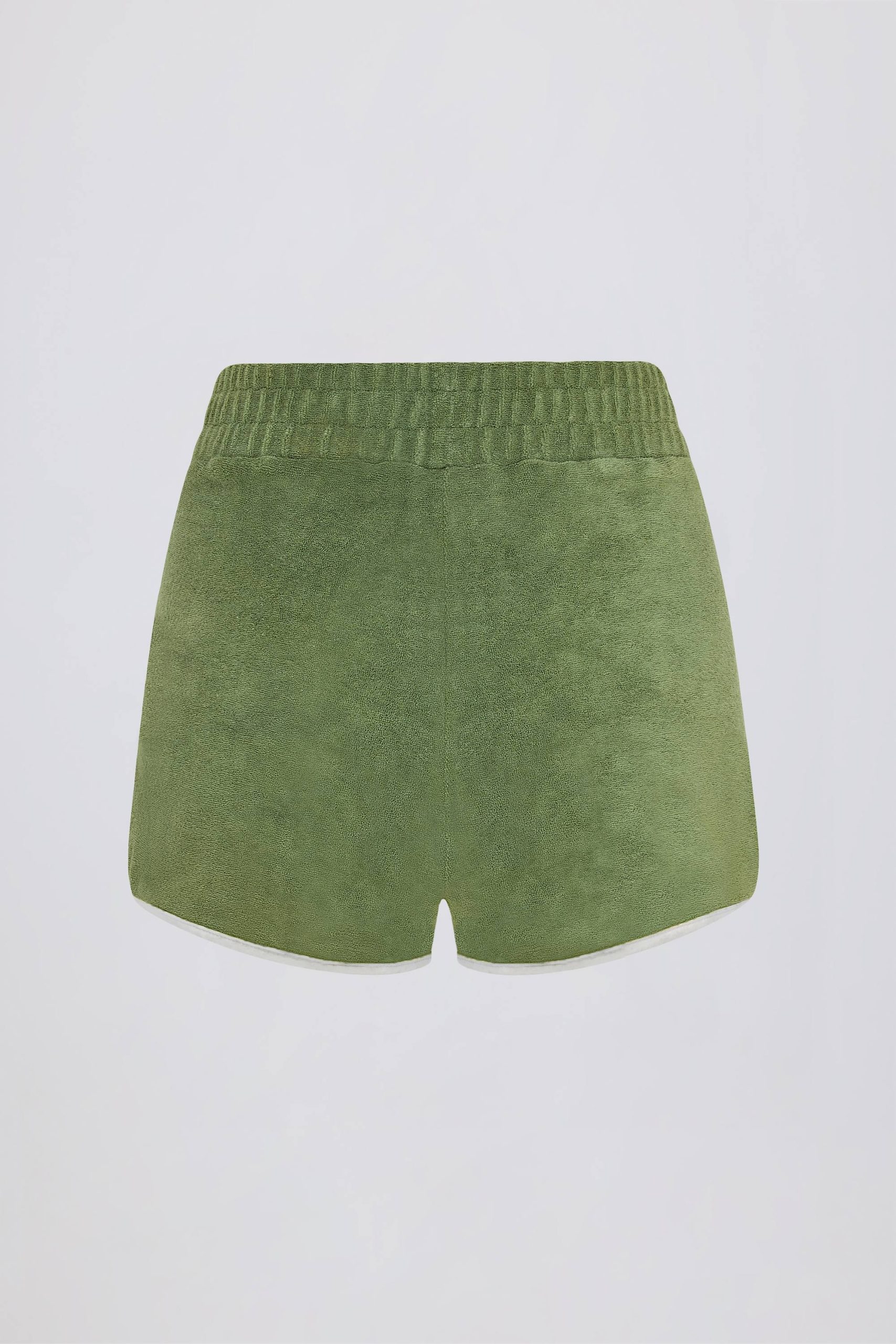 Nostalgia, served fresh. A playful update on a sporty classic, these shorts are crafted from lightweight, breathable and soft-touch terry towelling fabric to a mid-rise silhouette. Traced with contrasting trims, they feature two side slip pockets, breezy side splits that create a relaxed look, and a comfortable elasticated waistband.