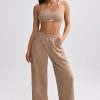 Terry Towelling Wide-Leg Joggers in Mocha Brown