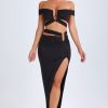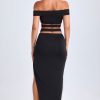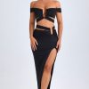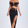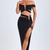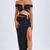 Designed to be worn on exotic escapes, the Urara maxi skirt is crafted from premium slinky jersey with a touch of stretch and a lightweight feel. Designed to coordinate with the Zene top, it features a structured U-shaped wire cut-out at the waist and cut-out straps that create a contoured, statement look. It’s complete with subtle ruching and a thigh-high front split.