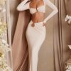 Master the art of versatile styling with the Mairead trousers. A staple silhouette you’ll wear for years to come, they’re crafted from premium semi-sheer stretch jersey and set on a mid-rise elasticated waistband with an asymmetric ruched panel. They’re cut to a universally flattering flared silhouette that can be dressed up or down.