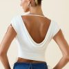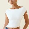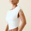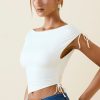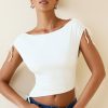 Asymmetric Ruched Cowl-Back Crop Top in Vanilla