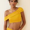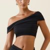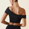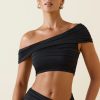 Styling staples. Perfect for creating versatile day-to-night looks, the Inga crop top is crafted from soft and slinky stretch jersey to an asymmetric, off-shoulder silhouette. It’s elevated with figure-enhancing ruching and is framed with a foldover draped neckline.