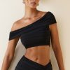 Styling staples. Perfect for creating versatile day-to-night looks, the Inga crop top is crafted from soft and slinky stretch jersey to an asymmetric, off-shoulder silhouette. It’s elevated with figure-enhancing ruching and is framed with a foldover draped neckline.