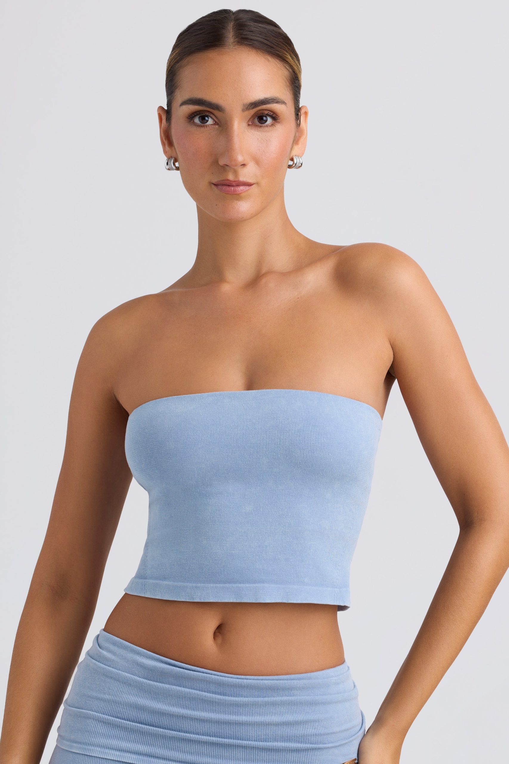 Bandeau Crop Top in Washed Blue