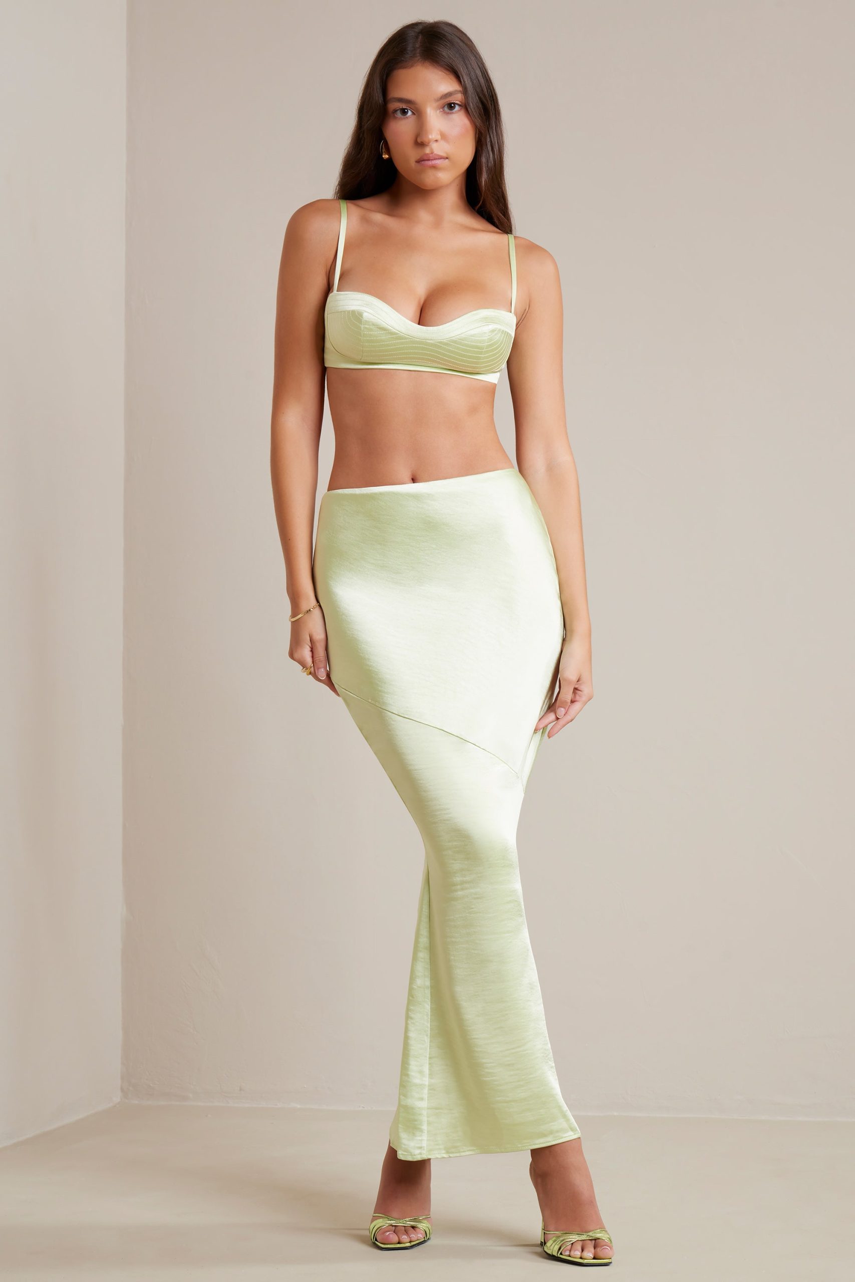 Elevated separates. A sleek maxi skirt design, cut from our soft and stretchy bias cut satin. Designed to hug your curves, the Marisol maxi skirt is an effortless eveningwear staple. Complete with panelling detailing and a slightly flared hemline.