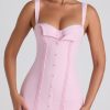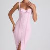 A classic silhouette enlivened with romantic details. Available in two romantic hues, the Theodora midaxi dress is crafted from lightweight georgette that skims your curves. It’s traced with fabric-covered buttons and pintucked detailing, inspired by romantic styles, and comes complete with a coordinating bra enhanced with shaped cups and adjustable straps for a comfortable fit.