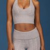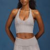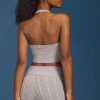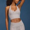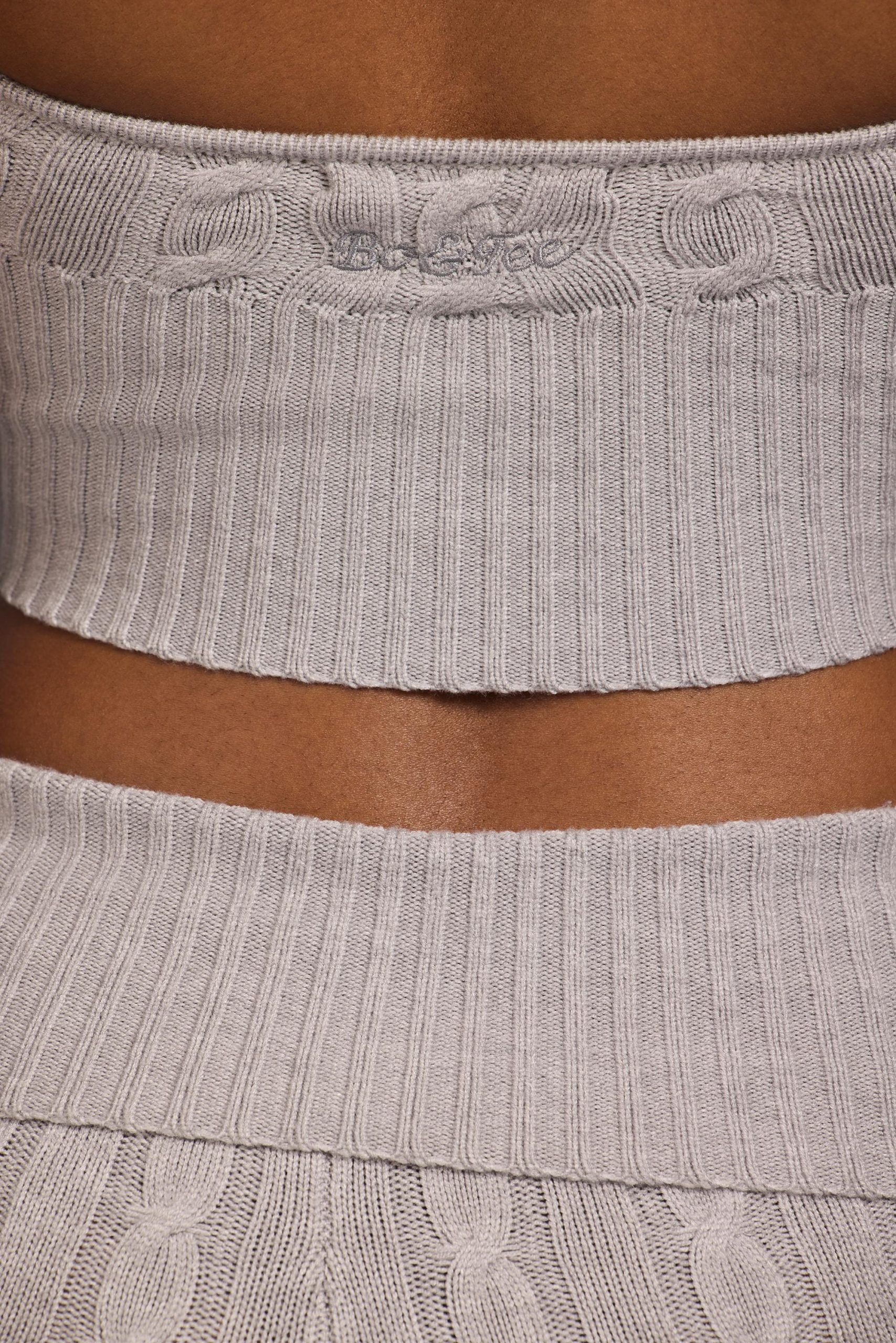 Cable-Knit Halterneck Crop Top in Grey Marl