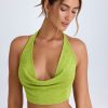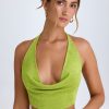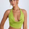 Elevated separates. A classic with a signature twist, the Sonia crop top is crafted from premium, textured stretch jersey to a halterneck silhouette with an adjustable strap at the nape for your perfect fit. It features a plunging cowl neckline and an open back with statement strappy detailing.