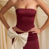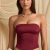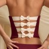 A statement style that’s perfect for party dressing, the Audrina top is crafted from non-stretch bonded satin to a classic strapless silhouette with a built-in corset bodice for enhanced support and princess seams for stunning shape. It’s elevated with a cut-out back elevated with bow-embellished straps.