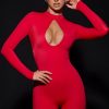 Get in character. Made for vampy nights, the Delilah unitard is crafted from premium, high-shine stretch jersey to a figure-hugging bodycon silhouette. The high neckline is punctuated with a plunging keyhole cut-out at the front and framed with long fitted sleeves. It’s complete with a statement open back.