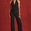 Dress the part for after-dark moments with the Tulay jumpsuit, crafted from premium devoré jersey and partially lined with 20D mesh for lightweight coverage. Cut to a universally flattering wide-leg silhouette, it’s elevated with a subtle animal-inspired pattern, plunging crossover V-neckline, statement open back and features adjustable halterneck ties for a customisable fit.