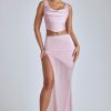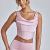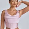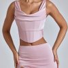 Elegant separates designed for romantic moments. Cut from our premium woven satin fabric with built-in corsetry that works to cinch your waist, the Malin top features cowl-neck draping at the front and back. It’s cut to a cropped length with an angled hemline, and acts as an effortlessly versatile piece for wherever the weekend takes you.