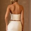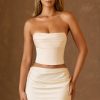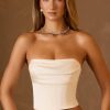 Dress up and dress down with the Isla corset top. A classic and versatile piece with built-in boned support, it’s crafted from premium lightweight satin with a touch of stretch to a bandeau silhouette, framed with a draped cowl neck. The signature lace-up back is fully adjustable for your perfect fit.