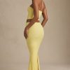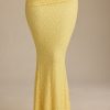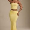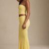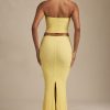 Draped Low-Rise Lace Maxi Skirt in Pastel Yellow