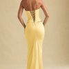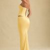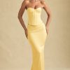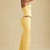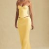 Draped Low-Rise Maxi Skirt in Pastel Yellow