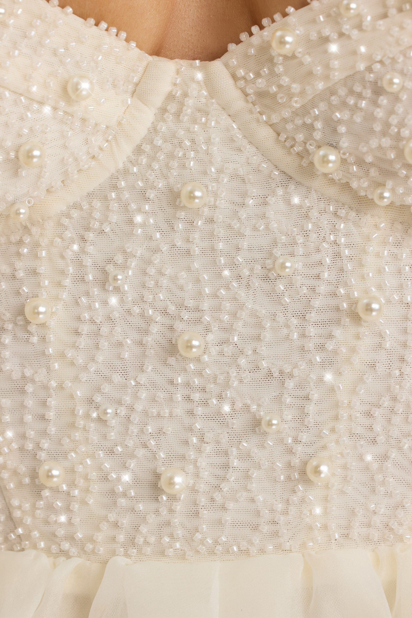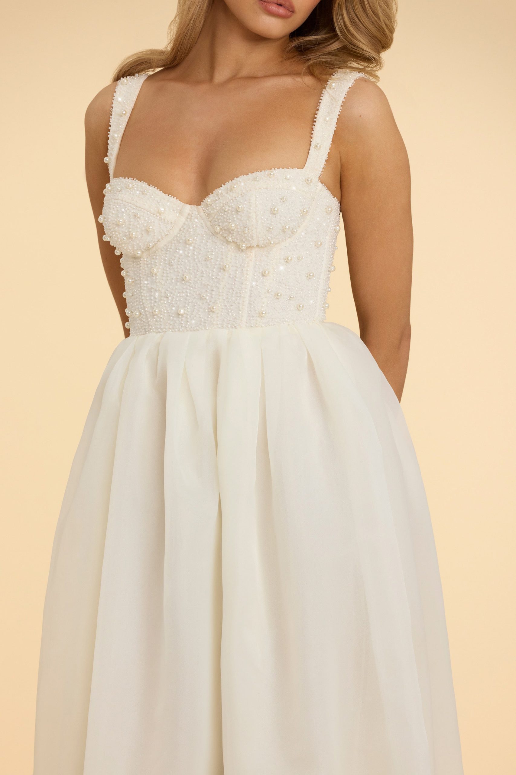 For nights you’ll never forget. Designed for your special events, the Delancey gown features a premium mesh corset for enhanced support, elevated with hand-finished bead and pearl embellishments that sparkle under spotlights. It’s cut to a dramatic maxi length with a voluminous organza skirt and is complete with adjustable tapered shoulder straps for your perfect fit.