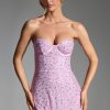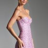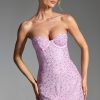 Head-turning silhouettes. Modelled on classic corsetry, the Crystella mini dress features a fitted bodice with moulded three-piece wired cups for enhanced lift and support. It’s crafted to a figure-skimming A-line silhouette from premium 20D stretch mesh with a power mesh lining that offers elevated comfort and coverage. The sweetheart cupped neckline is framed with detachable, adjustable camisole straps and the design is saturated with scores of sparkling HOTFIX embellishments.