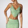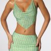 Catch the light. Designed in a premium stretch mesh fabric and adorned with hand embellishment throughout, the Rocco crop top is your essential sultry separate—complete with angled hem and a sexy strappy back.