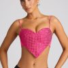 Sparkling and romantic, the Syrene crop top is a fun style for flirty weekend plans. Designed in our premium crepe fabric with a bust-flattering sweetheart neckline, Syrene features heart-shaped detailing and all-over sparkling hotfix embellishment. Complete with a lace-up corset back, this statement top is perfect for when you want to impress.