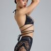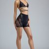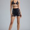 A festival season must-have. Create high-impact, experimental looks with the Bonnie shorts. Designed to sit high on the waist, they’re made from our seamless knit fabric that sculpts to your figure for a supportive fit. Intricate lace panels and laser-cut details trace each side, creating a contoured look that’s animated with rhinestone embellishments.