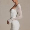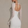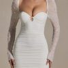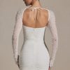An iconic silhouette, the St. Germain mini is the perfect statement dress. Crafted from our figure-enhancing premium mesh fabric with ample stretch, it’s elevated with all-over ruched detailing for a flattering fit. It’s framed with wired cups for enhanced support and semi-sheer long sleeves, fully hand-embellished with pretty pearls and beads.