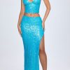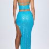 Embellished Low-Rise Maxi Skirt in Turquoise