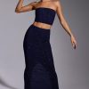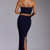 Create an unforgettable two-piece look with the glittering Melisande gown skirt. Cut to a dramatic maxi length and hand-embellished with sparkling hotfix, Melisande is made from stretch jersey fabric with woven metallic yarn. The flattering mid-rise design is destined to sparkle on the dancefloor and features a centre back split for ease of movement.