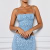 Embellished Mid-Rise Micro Mini Skirt in Light Blue